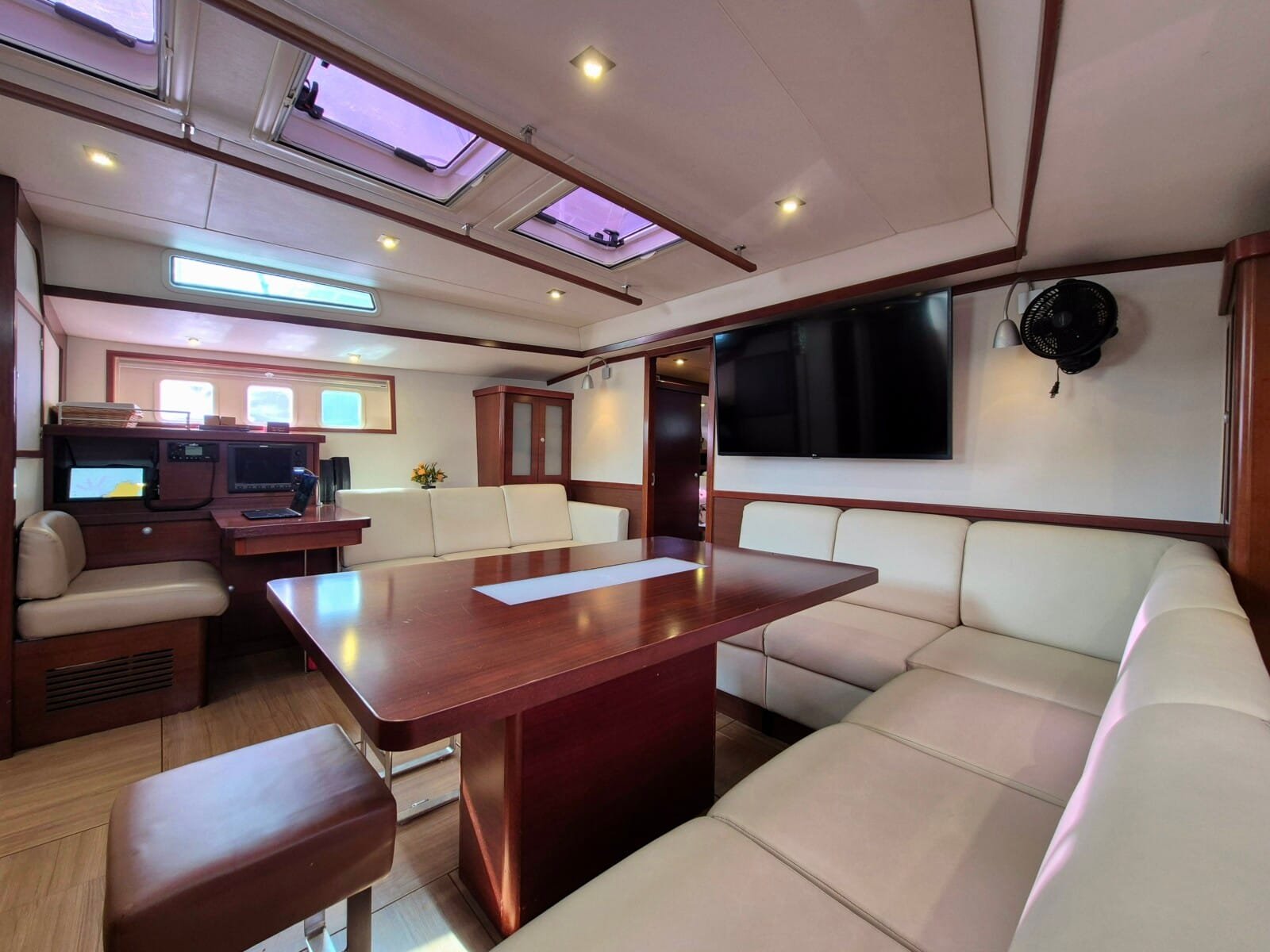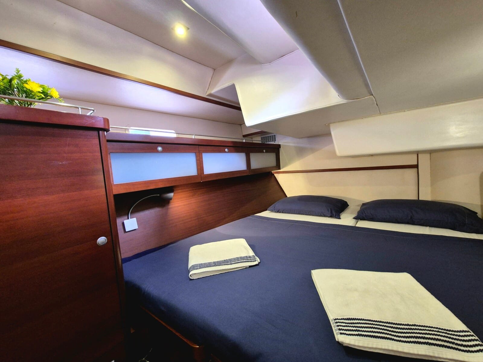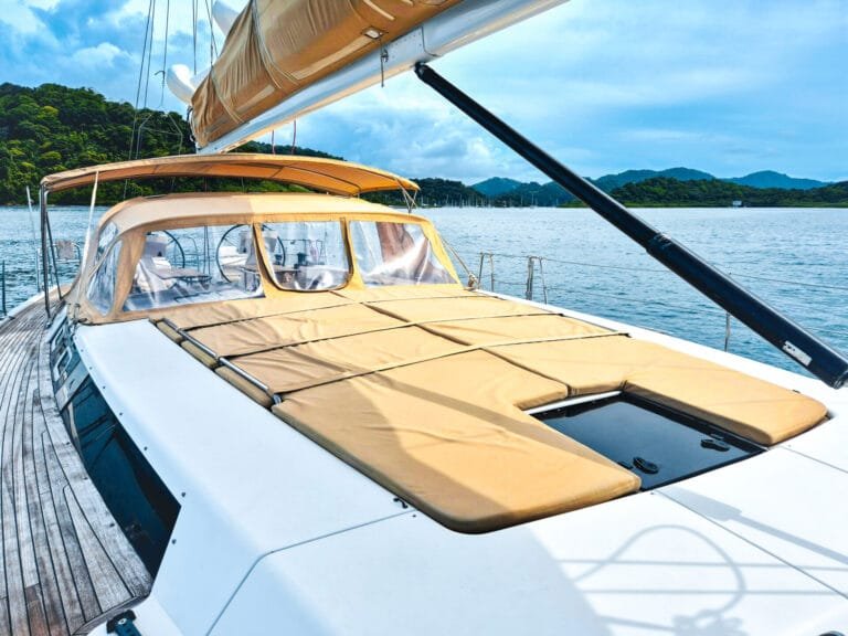 3 dvoulůžkové kajuty pro hosty – každá s vlastním sociálním zařízením Prostorný salón – posezení, jídelní kout Venkovní kokpit se stíněním – ideální pro stolování i relax Sluneční paluba – perfektní pro odpočinek a výhledy Oddělená kajuta pro posádku – zajištěno soukromí hostů Klimatizace
